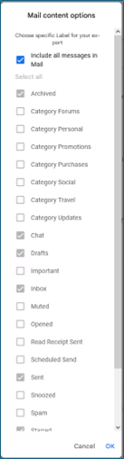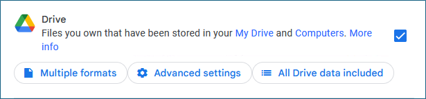 - Clicking the 'All Drive Data Included' option will let you select which data you want to download. Since you want to download all Drive data, don't make any changes. Select ‘OK’ to close the options and continue.