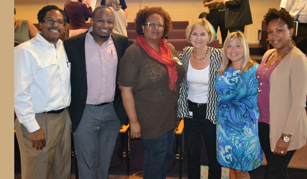 Ashley Valis: First, let me introduce the team that makes up Dr. Perman’s new Office of Community Engagement. In addition to me, we have Brian Sturdivant, who’s been doing great work on the campus in this arena for years. Dr. Jane Lipscomb, who is the director of the Center for Community-Based Engagement and Learning [CBEL], and her colleagues, Lisa Rawlings, associate director; Gary Williams and Rachael Parran, program managers.