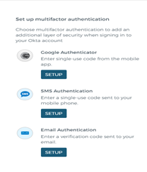 The multifactor authentication options available include: