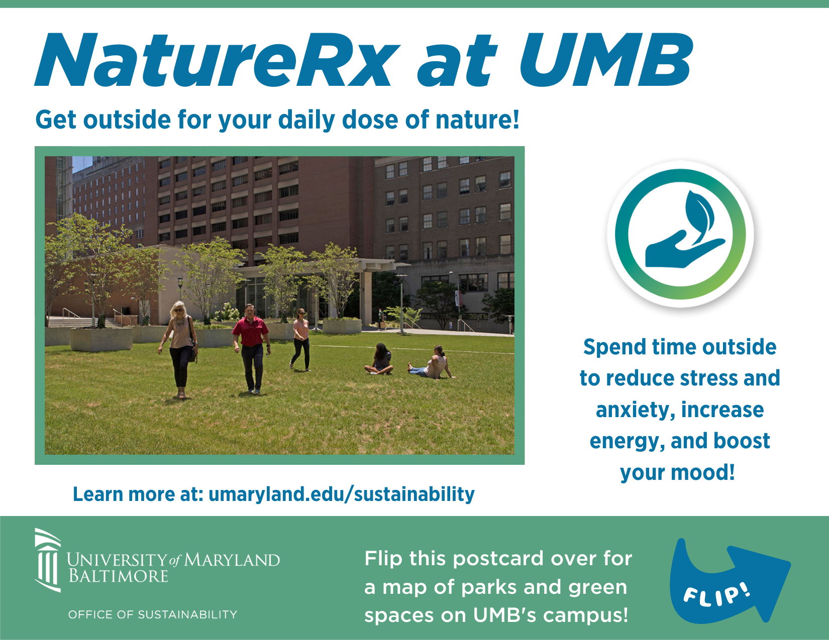 To see UMB’s green spaces, Baltimore City Parks, and Maryland State Parks, visit UMB’s Green Spaces Map.
